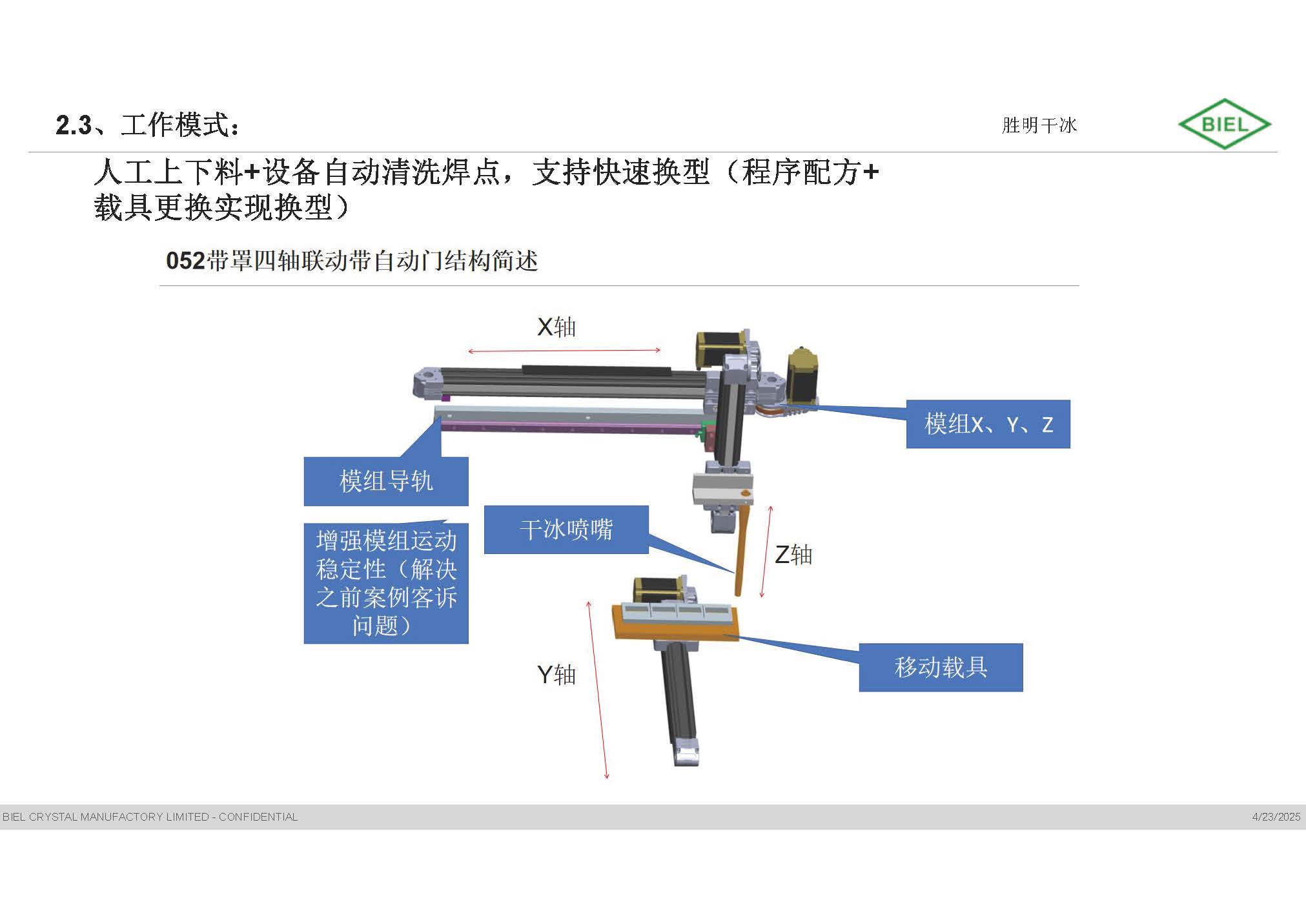 五軸聯(lián)動自動門干冰清洗設備052E,省去啟動及關門時間,提高清洗節(jié)拍